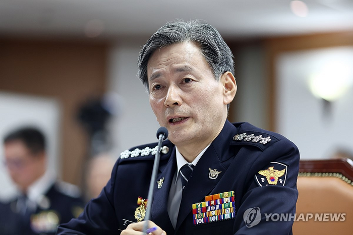 ( 조지호 경찰청장이 공식 회의에서 발언하는 모습)