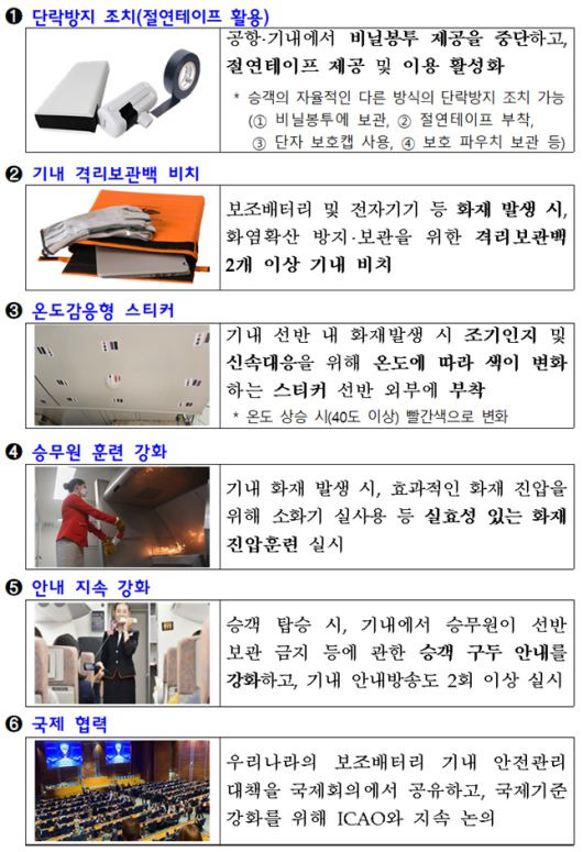 - 특징 : 국제 기준 반영, 보조배터리 안전관리 강화, 승객 불편 최소화