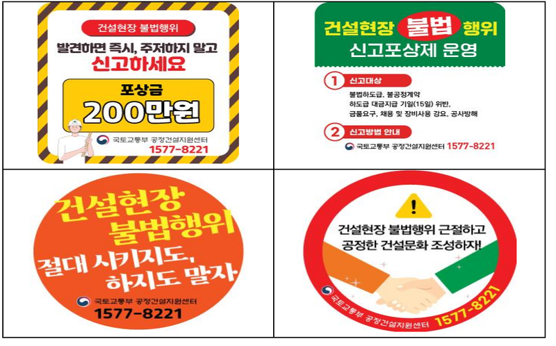 국토교통부 건설현장준법감시팀 : 044-201-3508 고용노동부 근로감독기획과 : 044-202-7531 건설산업예방정책과 : 044-202-8939