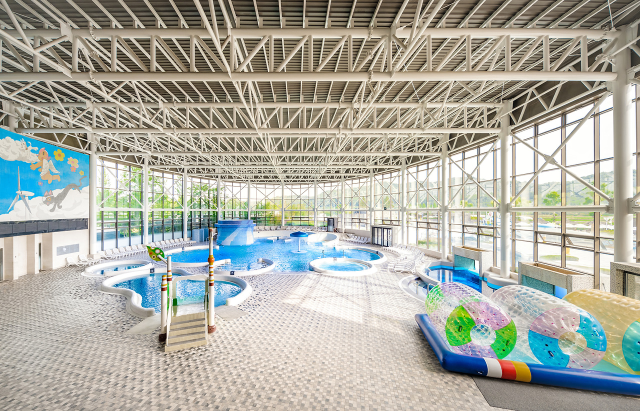 - 실내외 수영장, 파도풀, 워터 슬라이드 등 다양한 물놀이 시설이 마련되어 있어 아이들과 함께 즐기기에 좋습니다.