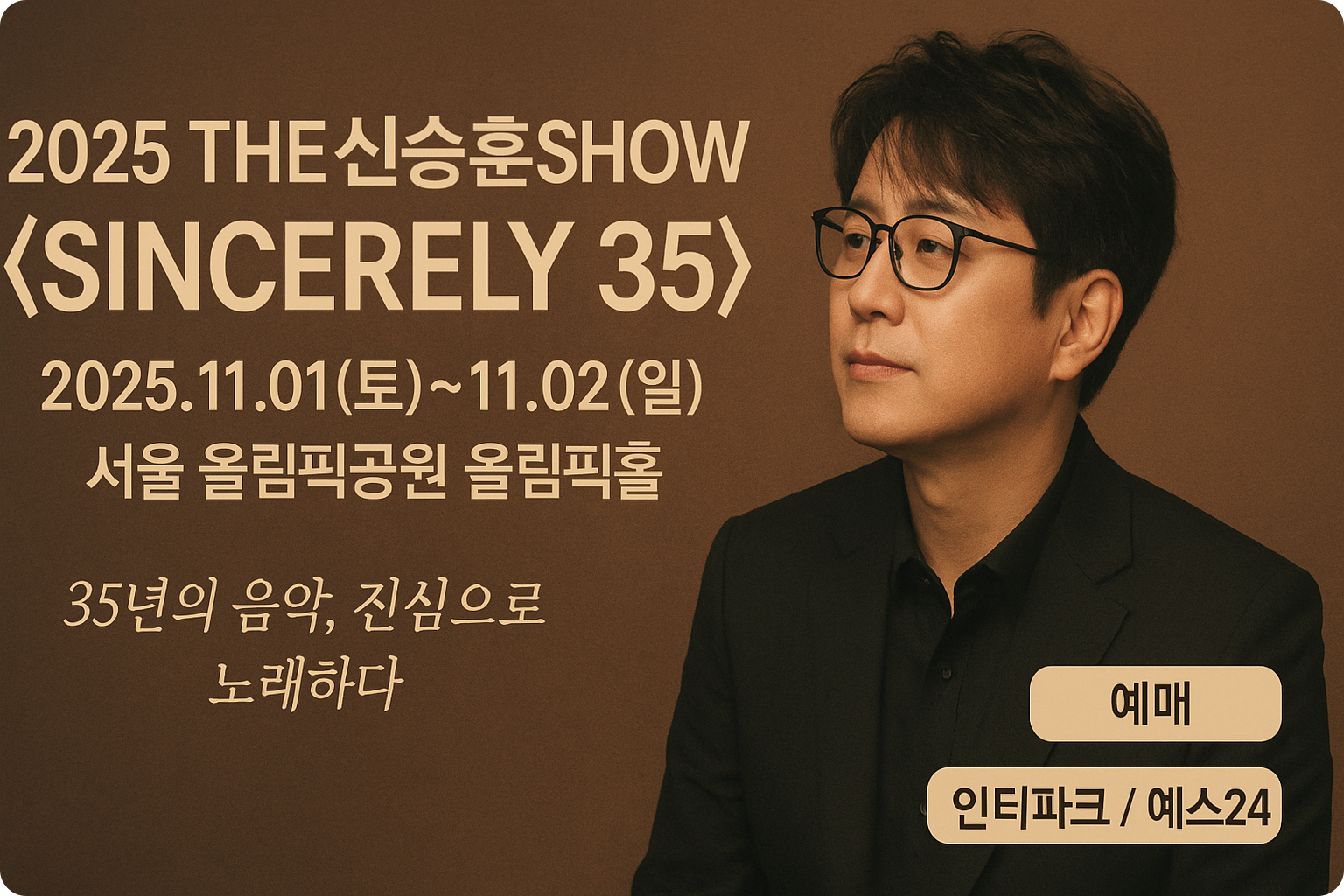 ‘2025 THE신승훈SHOW 〈SINCERELY 35〉’는 2025년 11월 1일~2일 서울 올림픽공원 올림픽홀에서 개막합니다.