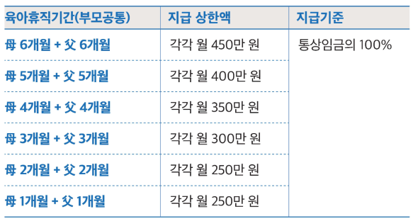 • 첫 3개월: 부모 각각 월 최대 150만 원