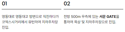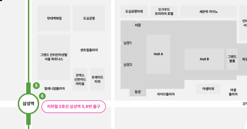 버스 : 그랜드 인터컨티넨탈 호텔 앞 (삼성역 5번 출구)
