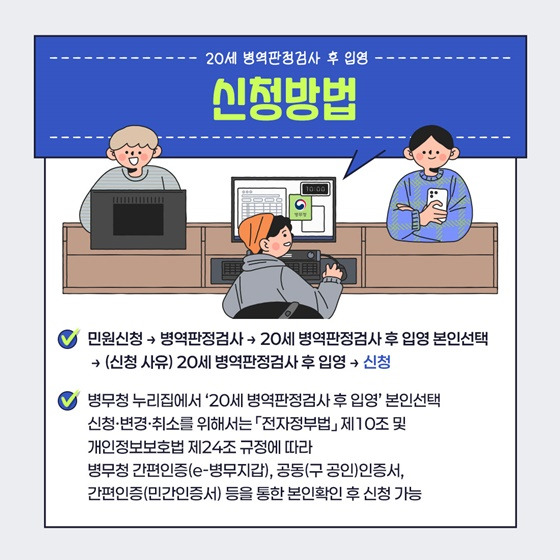 2025년 11월부터 20세 이하 대학 진학자 입영연기 즉시 자동처리와 병역면제자 치료이력 추적관리제가 시행됩니다.